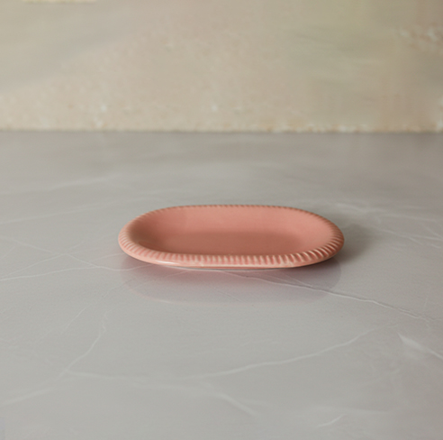 Product Type: Ceramic Platter Category: Tableware Shape: Capsule Dimension: 16.5 cm × 10.5 cm Material: High-Fired Ceramic Finish: Glazed Colour: Blush Pink MOQ: 50 pieces