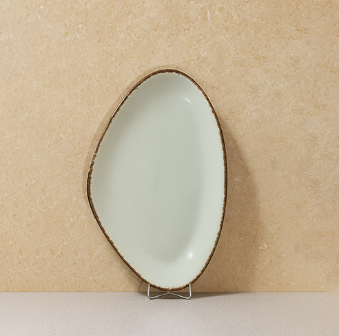 Product Type: Ceramic Platter Category: Tableware Shape: Oval Dimension: 33 cm × 21 cm Material: High-Fired Ceramic Finish: Glazed (Speckled) Colour: Seafoam Green MOQ: 24 pieces